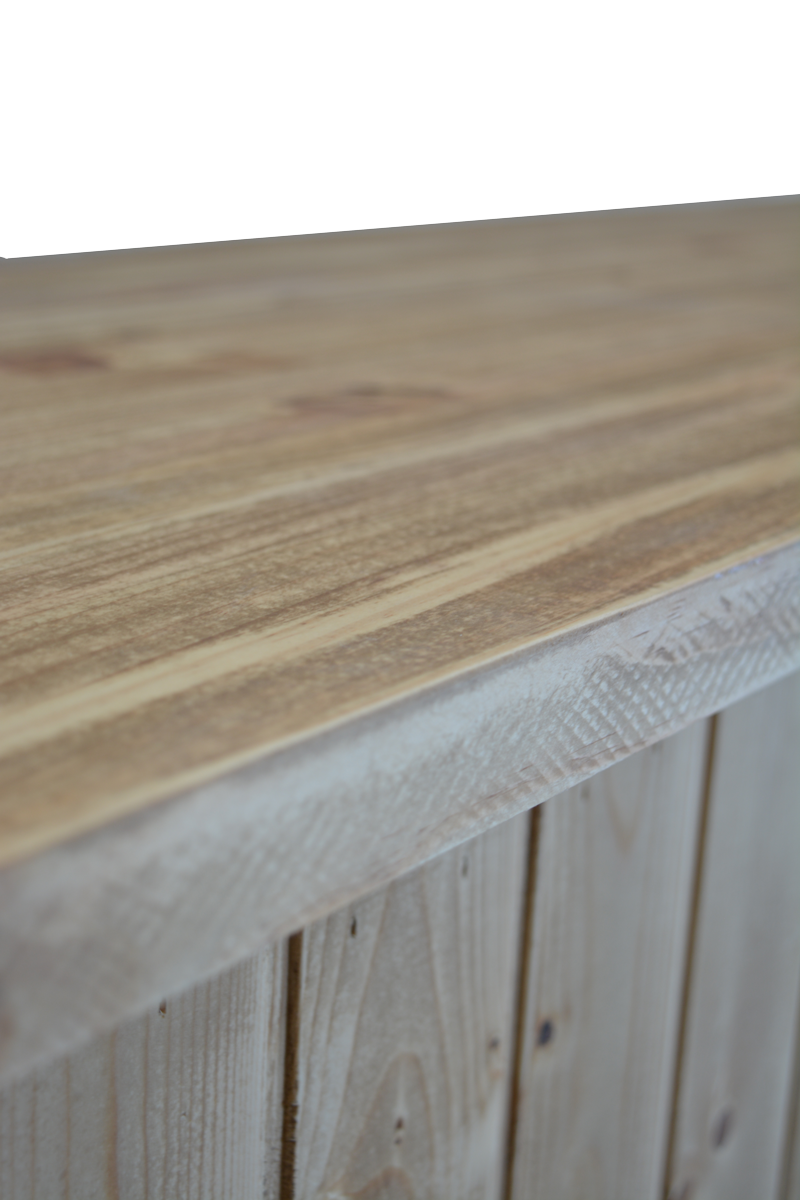 La Barra de Madera Plegable Esparta es una barra de madera fabricada en madera de pino, una madera resistente y de calidad que podrás utilizar sin problema en tu negocio, con un bonito color natural que realza la belleza de la madera y le aporta un estilo rústico precioso.