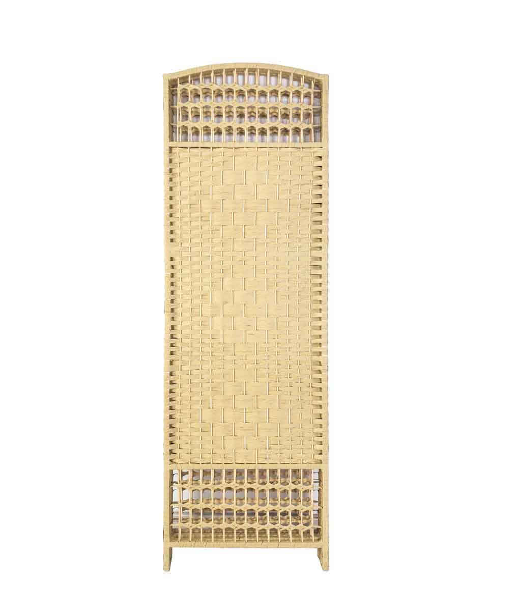 El biombo crema es un separador de ambientes elaborado en ratán sintético, con un bonito diseño trenzado en cada uno de sus paneles, aportándole una belleza inigualable que te permitirá aportar un toque de estilo a cualquier estancia. Este material con el que está elaborado, le aportan además de belleza solidez y resistencia, permitiendo que sea un elemento funcional para poder usar sin problema, tanto a nivel particular como profesional.