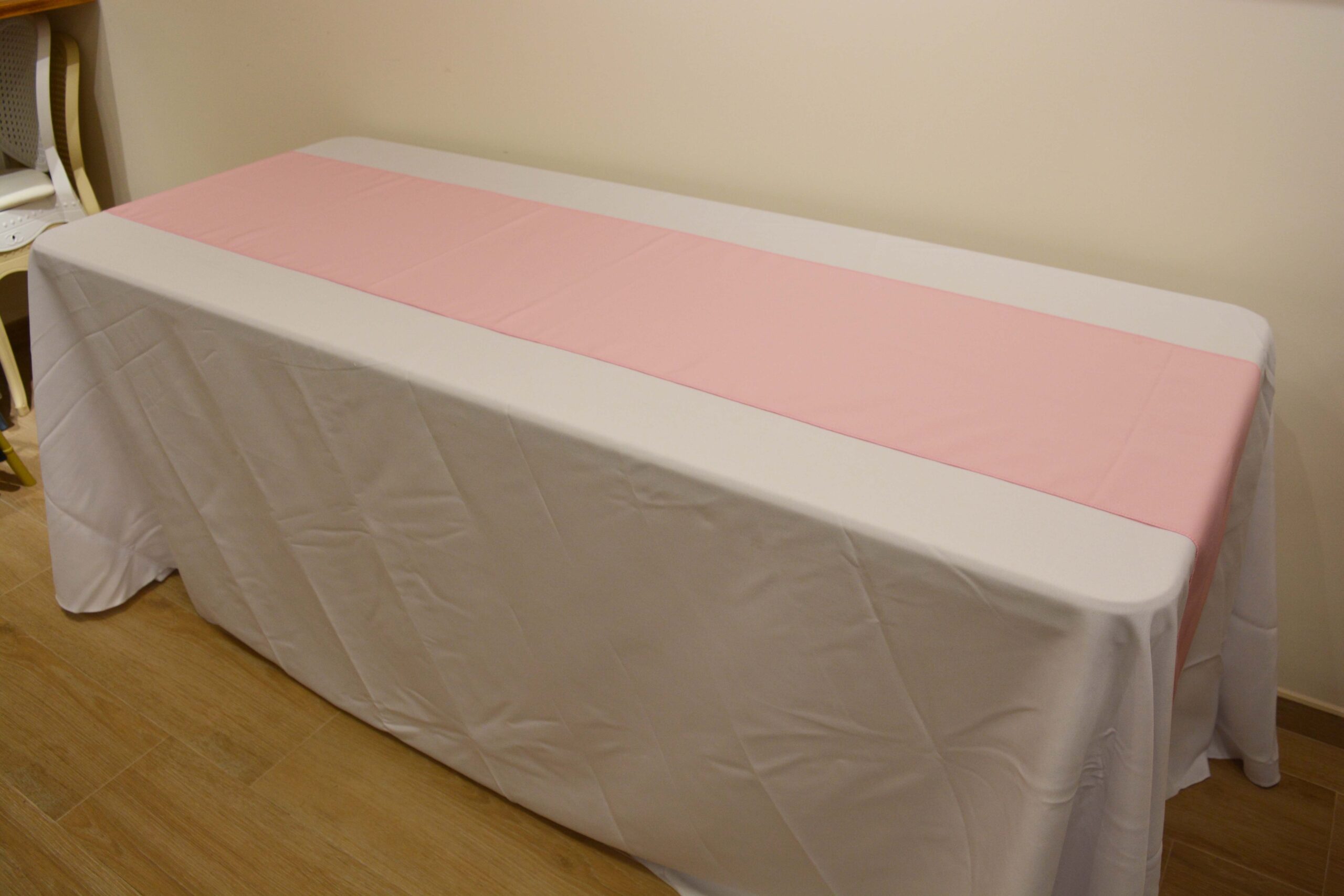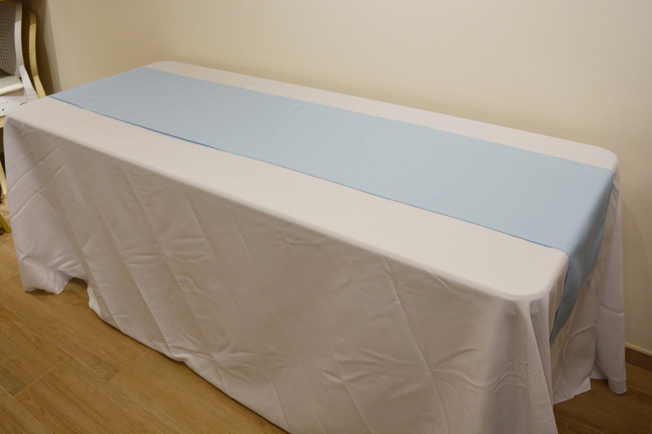 Camino de mesa BASIC de 240x40cm para decoración. Disponible en 2 colores (rosa y azul celeste), un complemento perfecto junto a nuestros manteles BASIC, aportando un toque de color en la decoración en mesas de eventos y celebraciones.