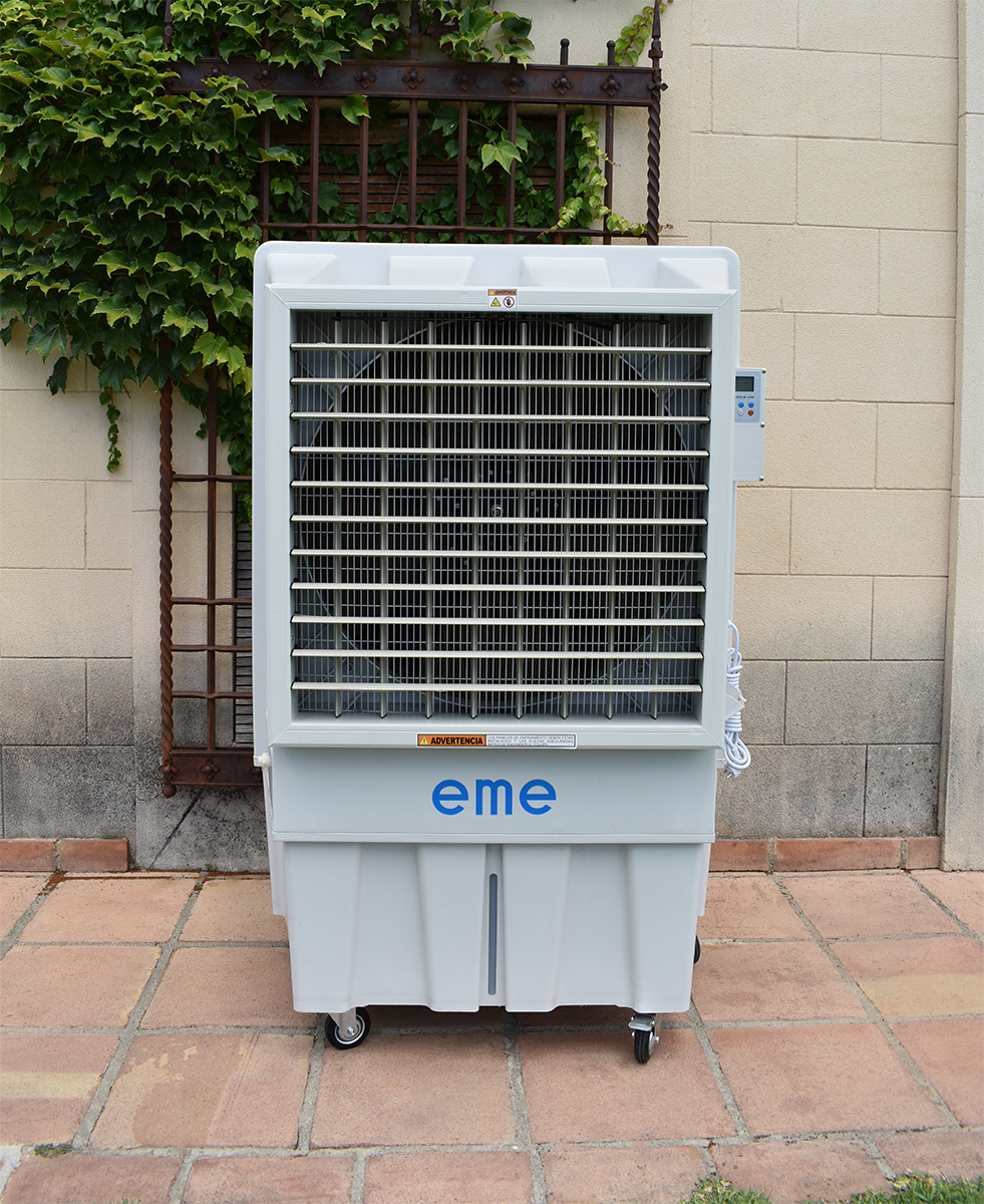 Si quieres ofrecer una temperatura agradable en tu evento y no tienes la forma de hacerlo, los enfriadores evaporativos pueden servirte de gran utilidad. En EME Mobiliario contamos con enfriadores evaporativos portátiles, que te permitirán poder mover el aparato de un lugar a otro, atemperar el ambiente con un bajo consumo eléctrico.