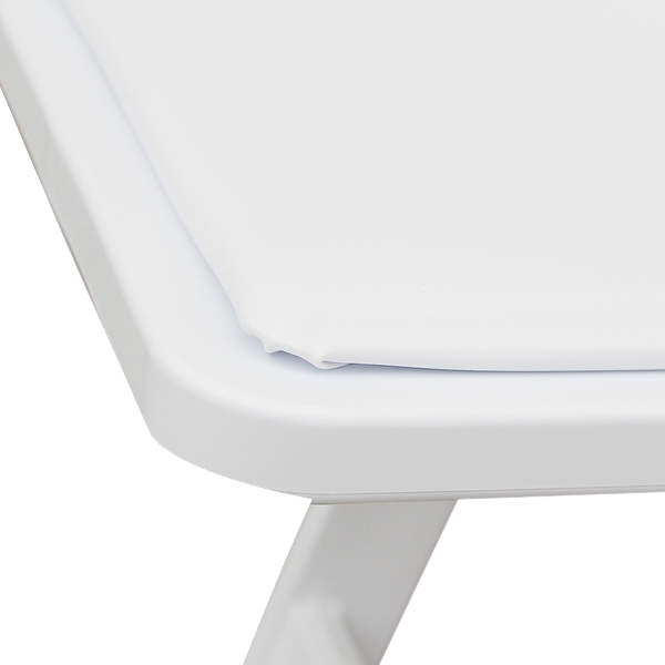 Cojín de polipiel para la silla plegable travel. Disponible en color blanco. Sistema de fijación con clic.
