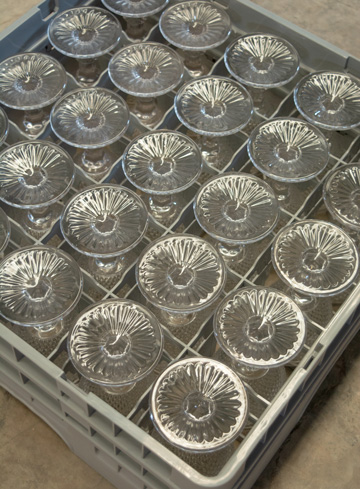 La Copa Tallada Transparente requiere una cesta con base y un extensor de 25 compartimentos, que permite guardar cada vaso de forma individual y segura, evitando que los vasos se dañen durante su transporte y almacenaje.