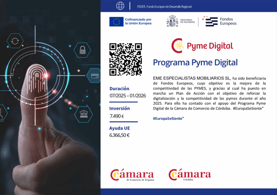 Desde EME Mobiliario nos complace anunciar que somos beneficiarios del Programa Pyme Digital de la Cámara de Comercio de Córdoba.