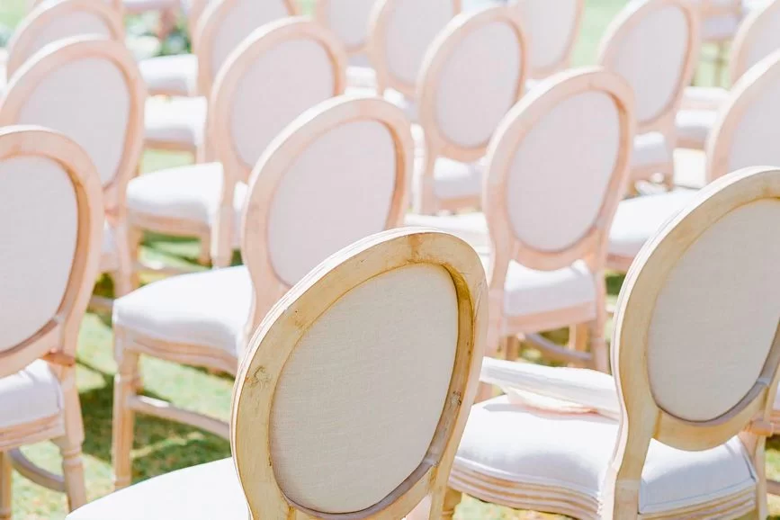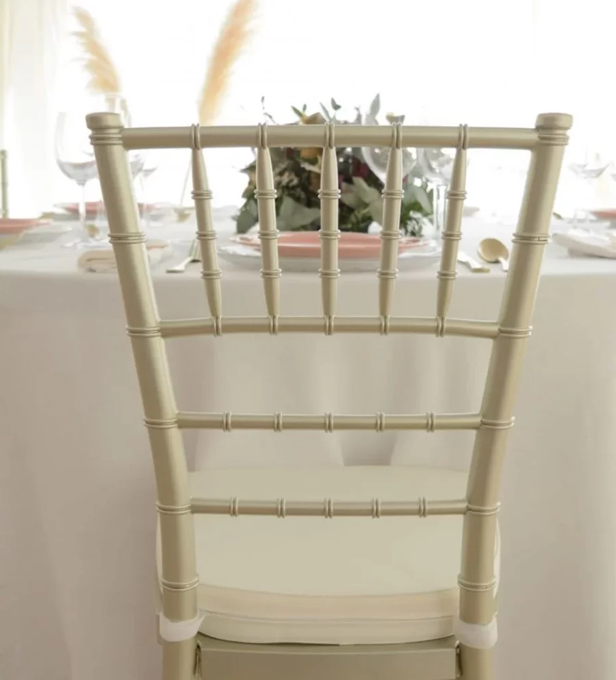 Encontrarás la silla tiffany, también conocida como silla Chiavari, en diferentes tonalidades y materiales. En polipropileno, policarbonato o madera y en colores como dorado, negro, blanco, en madera o incluso transparente. Elige esta última opción y aporta una sensación extra de amplitud al espacio del evento. Los tonos dorados serán perfectos para bodas en jardines, aunque la apuesta segura siempre será el blanco.