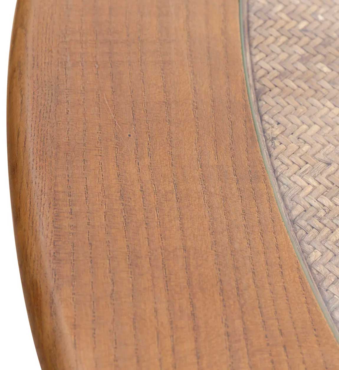 La Mesa de Comedor Manila es la elegancia y la calidez del hogar proyectadas en una mesa. Cuenta con un precioso y exclusivo diseño, una mesa redonda con unas patas en madera de roble que le aportan estabilidad y un toque señorial. En el tablero, cuenta con un bonito trenzado de ratán protegido con un cristal que viene incluido.