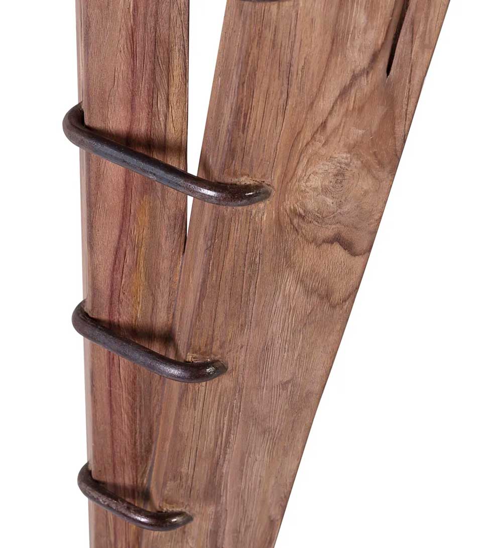 La Mesa de Comedor Orlando Hierro es una mesa de diseño rectangular, elaborada de forma artesanal, en madera de teca reciclada, con unos apliques decorativos en las patas de hierro.