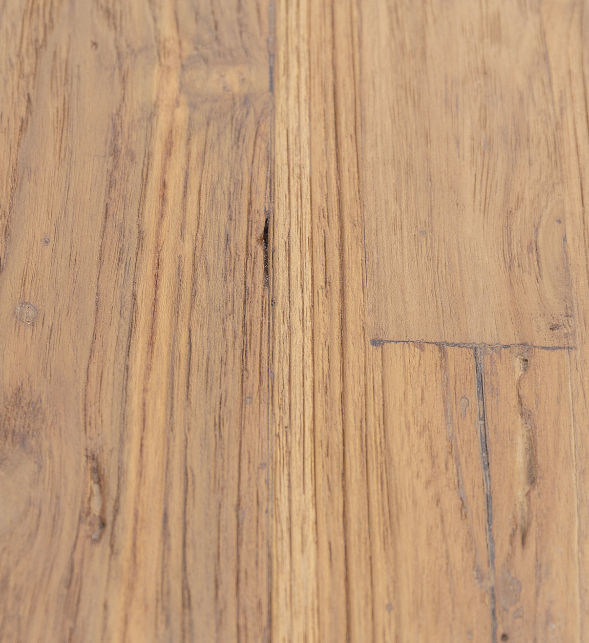 Elaborada en madera de teca reciclada, presenta un tablero con una preciosa terminación de madera y unas robustas y clásicas patas que son las que hacen que le aporten personalidad y estilo rústico.