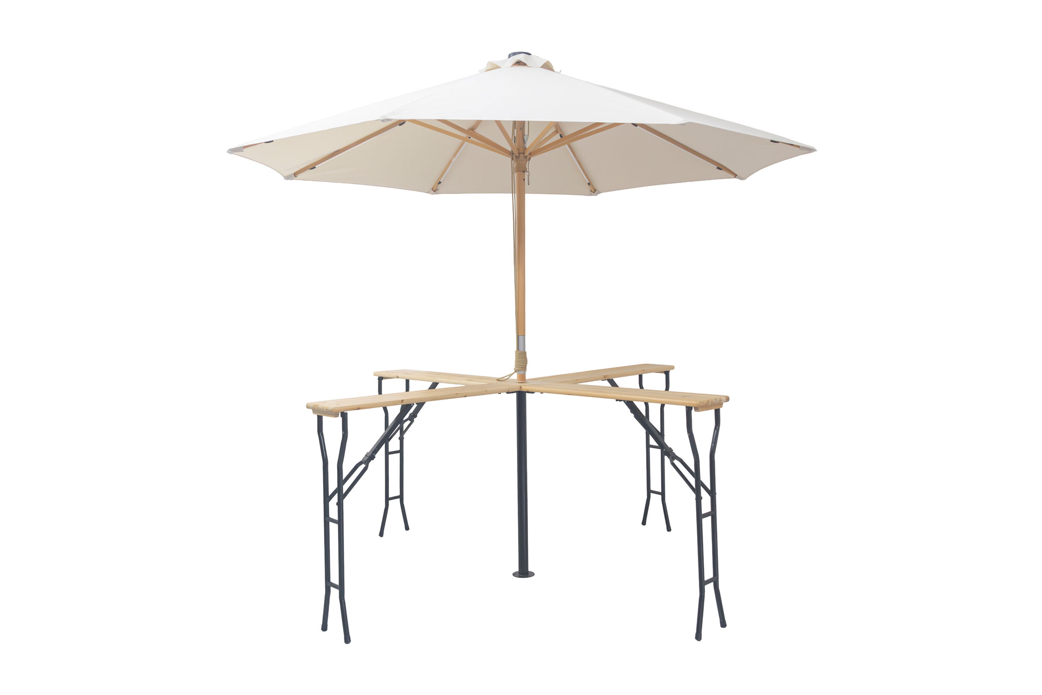 Este modelo incorpora un agujero central especialmente diseñado para colocar sombrillas, ofreciendo la posibilidad de crear zonas de sombra y mayor confort en espacios exteriores. Gracias a sus dos medidas disponibles (38 mm y 48 mm), permite adaptar sombrillas de diferentes tamaños, añadiendo funcionalidad sin alterar el diseño limpio de la mesa.