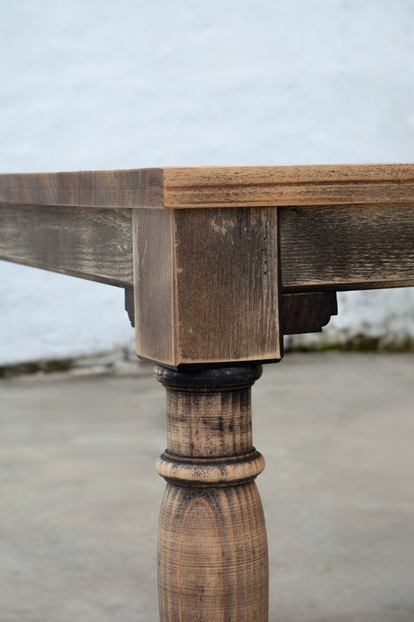 Cada mesa fabricada de madera de alta calidad es única, gracias a las vetas naturales y los matices irregulares que presenta, lo que son seleccionadas para darle personalidad y encanto a tu decoración de sala, evento… Su acabado envejecido resalta los tonos y las imperfecciones naturales de la madera.