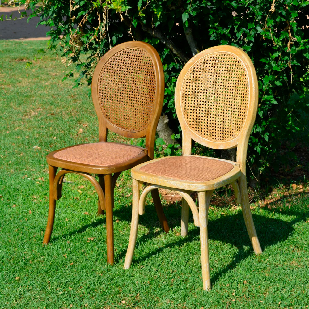El ratán natural le aporta un toque de estilo y belleza a cualquier espacio. Al ser una fibra natural, el ratán forma un dibujo/diseño único e inigualable que le va a dar esa personalidad, estilo y belleza a la silla de tu evento.