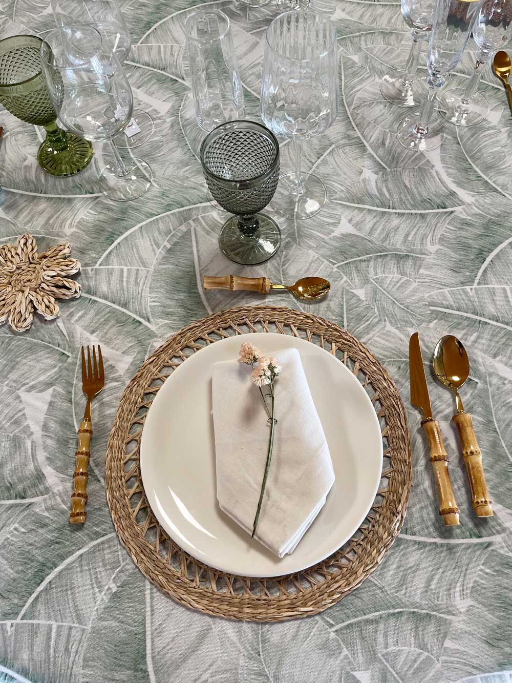 Puedes combinar esta servilleta con manteles sin estampado para resaltar aún más su bonito diseño o, por el contrario, si quieres una decoración que potencia el estilo tropical, combínala con el Mantel Amazonia. Elijas la opción que elijas, ¡seguro que aciertas!