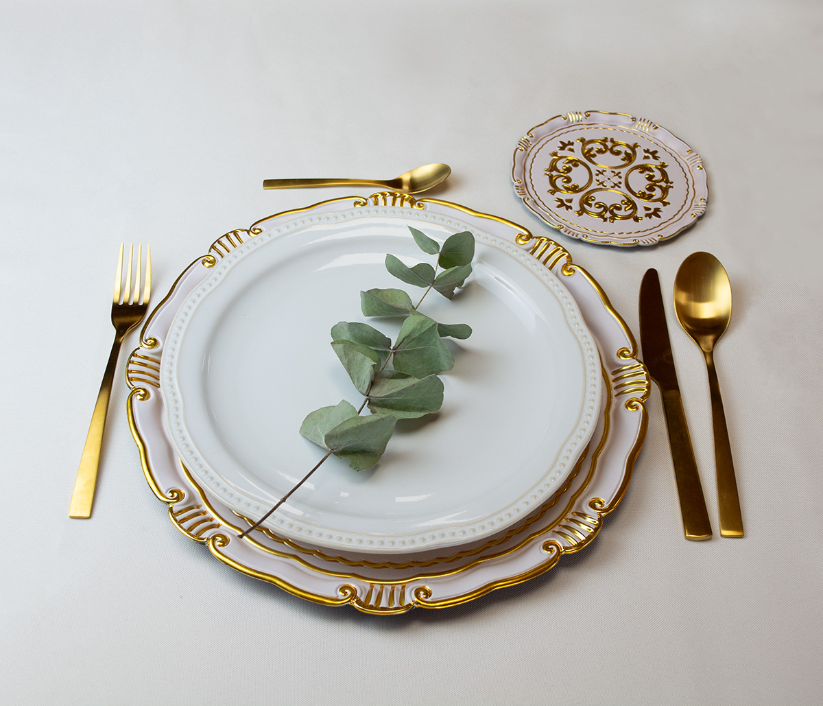 Bajoplato + Plato de Pan Toscana Blanco Y Dorado – Elegancia indestrutible