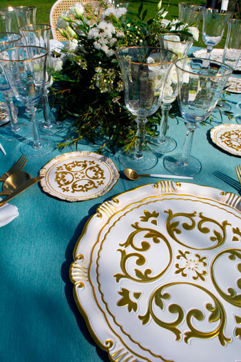 La recomendación que te hacemos desde EME Mobiliario es combinar este conjunto de bajoplato y de plato para pan con otros elementos en tonos neutros, para seguir una línea de armonía en la decoración de la mesa para tu evento y/o celebración.