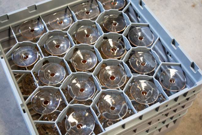 - Para la Copa de Vino Elegance necesitarías unos extensores con 20 compartimentos y así, las copas estarán perfectamente acomodados para transportarlos y el almacenamiento será mucho más fácil.