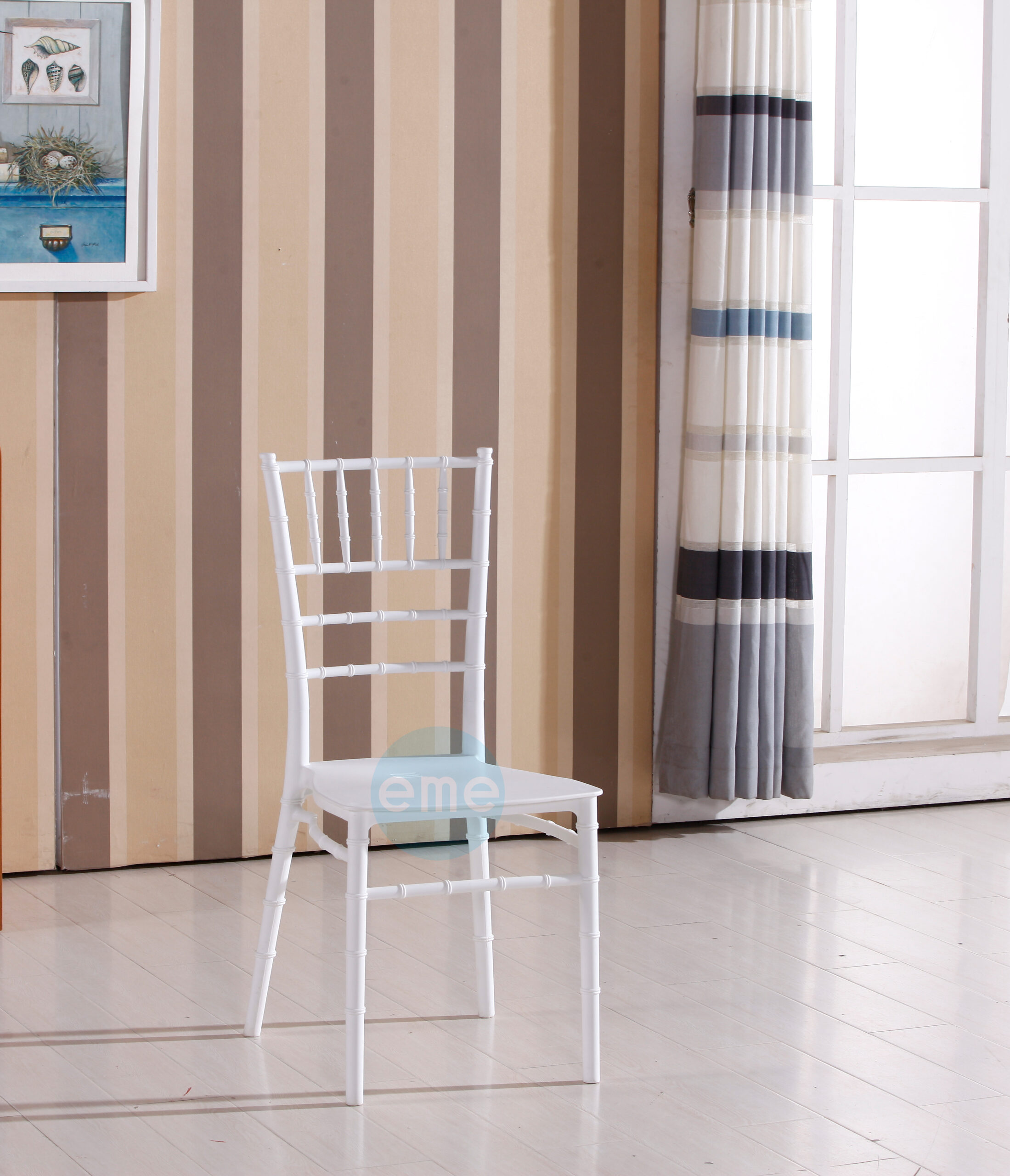El modelo de nuestra Silla Tiffany Basic Blanca o Silla Chiavari Basic Blanca es un modelo de silla con mucho estilo, con un diseño monoblock de una sola pieza, fabricadas en Polipropileno y con un solo travesaño en la parte inferior, haciendo de ésta una silla apilable hasta en 10 unidades. Como ya hemos dicho anteriormente, es la Silla para Eventos por excelencia ya que su comodidad, su diseño y su fácil mantenimiento hacen que sea perfecta para las celebraciones.
