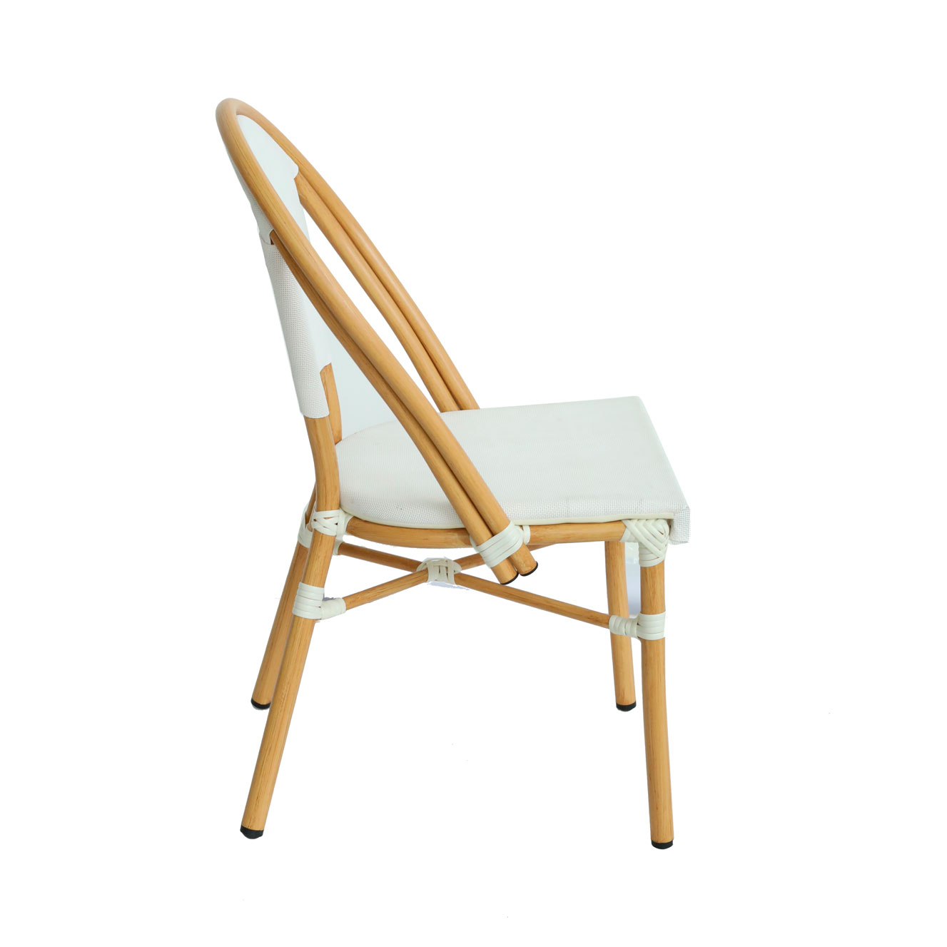 La Silla Nantes Blanca es la elección perfecta para eventos que requieren una estética limpia y elegante. Fabricada con una estructura de aluminio que imita al ratán y un asiento de textilene en color blanco, combina diseño, durabilidad y funcionalidad.