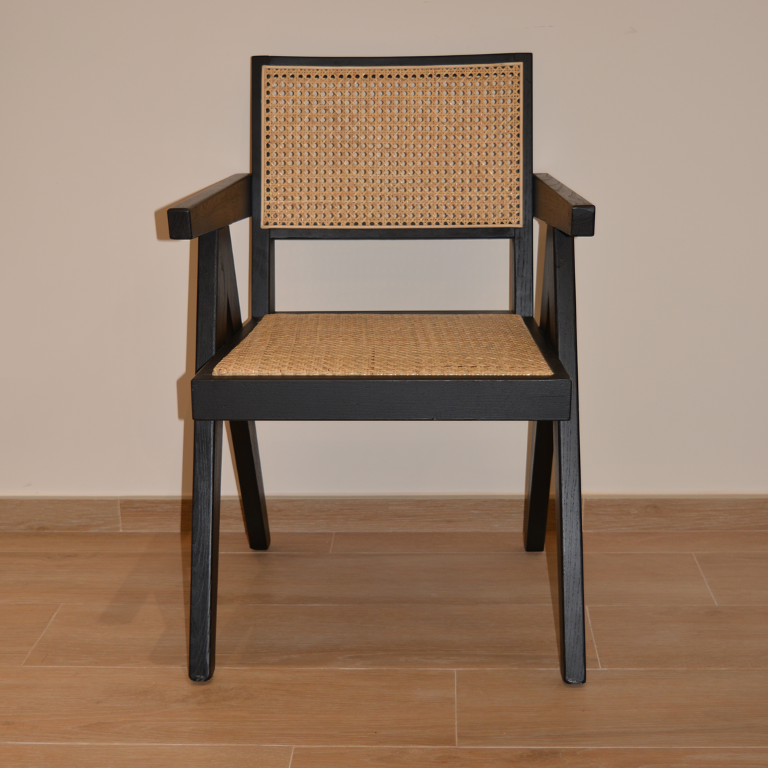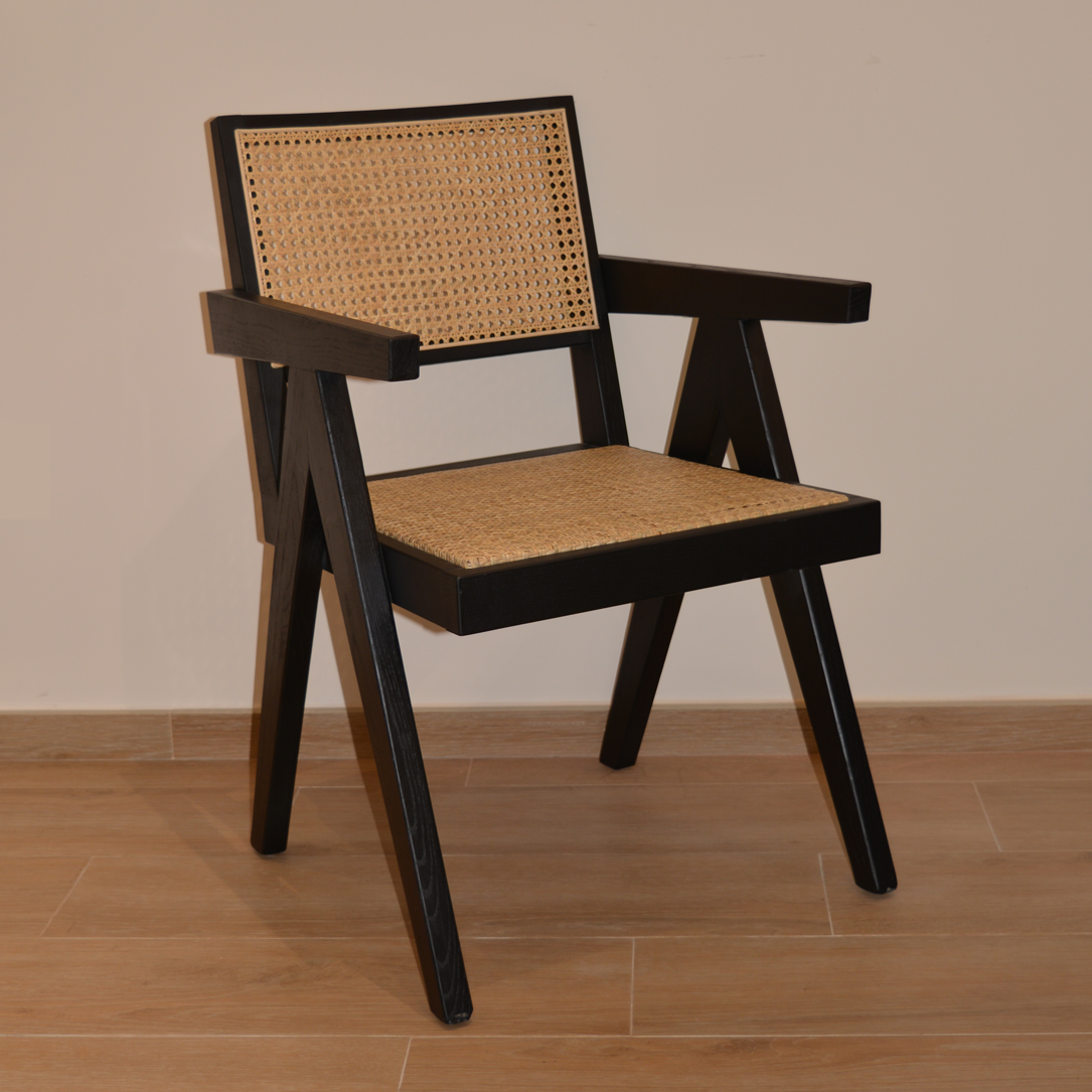 Sus líneas geométricas y los característicos reposabrazos de la silla la convierten en una elección perfecta, ideal tanto para espacios modernos como para ambientes con un toque vintage