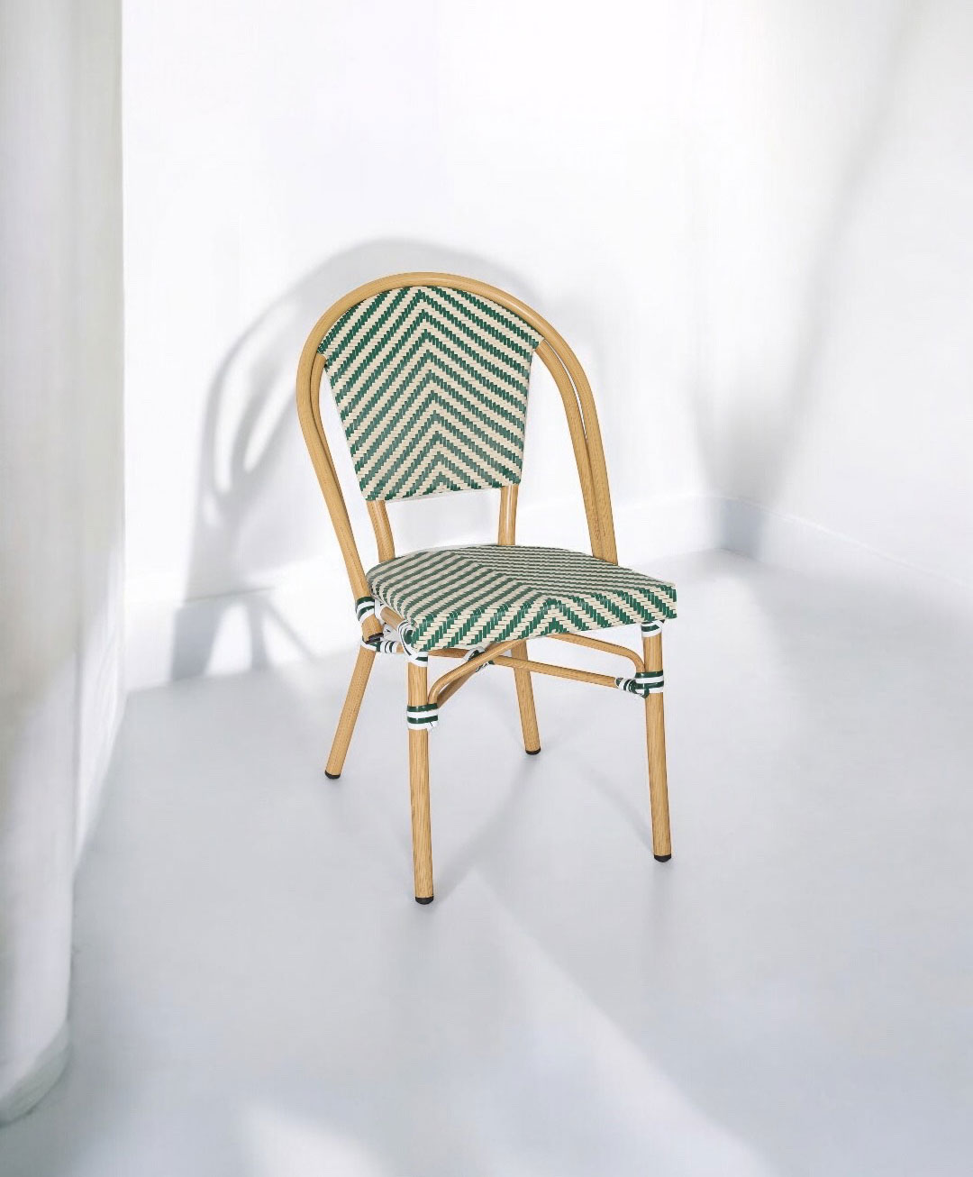 Déjate seducir por la Silla Paris Verde, una pieza que mezcla tradición y modernidad. Inspirada en las sillas que decoran los cafés del Sena, su diseño en espiga y estructura de aluminio evocan calidez y naturalidad.