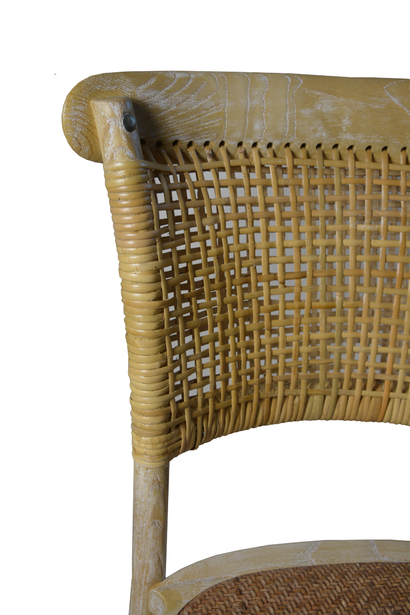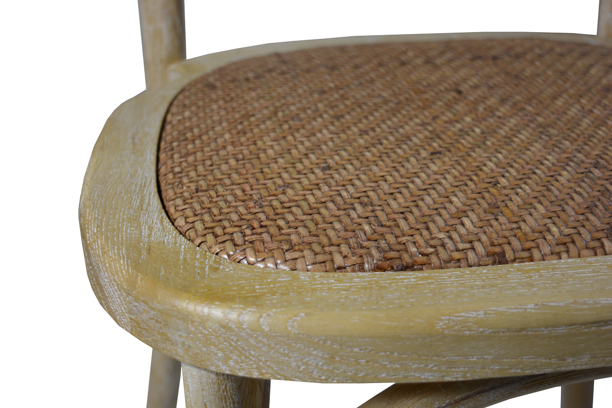 En EME Mobiliario hemos introducido este nuevo modelo, que llega para ampliar la variedad de sillas de madera para eventos, con un respaldo diferente e innovador de piel de ratán trenzado para crear ambientes de estilo rústico.