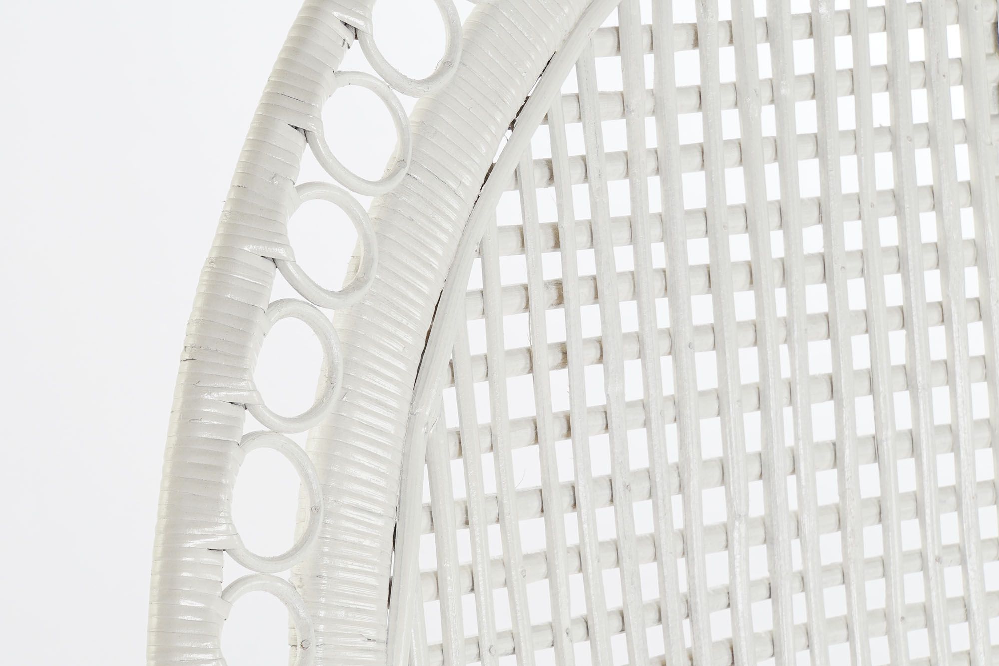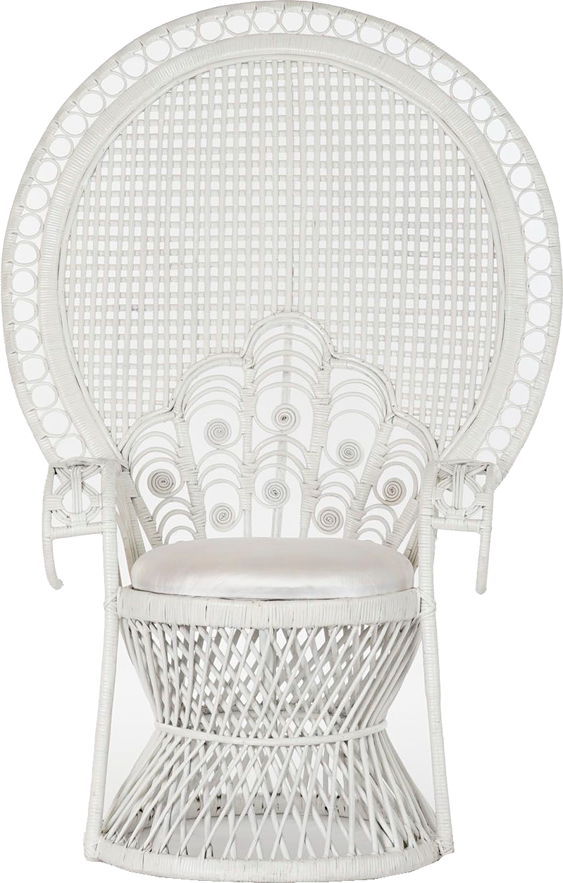 Un sillón, también conocido como Sillón Pavo Real o Peacock, fabricado en ratán natural de forma artesanal, tiene un bonito trenzado que da lugar a un diseño único y exclusivo en un bonito color blanco.