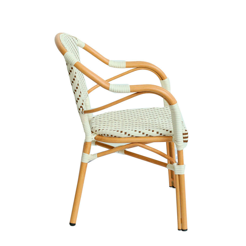 Transforma cualquier espacio con la sofisticación y el encanto del sillón Lyon, una pieza icónica inspirada en el clásico diseño bistró parisino. Con su estructura de aluminio de alta calidad y un acabado de ratán sintético impecable, este sillón combina a la perfección estética, funcionalidad y durabilidad. Es ideal para quienes buscan crear ambientes cálidos, elegantes y acogedores, ya sea en un restaurante, cafetería, terraza o incluso en un evento especial.