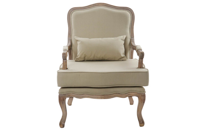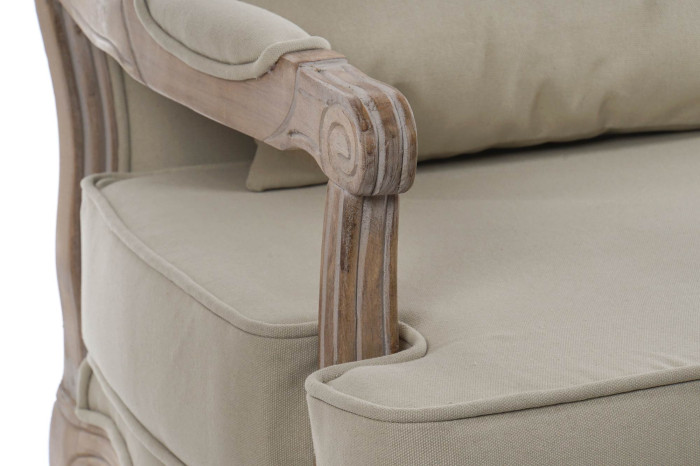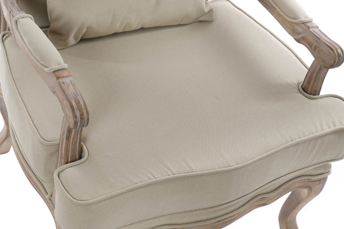 Se trata de nuestro Sillón Madera Beige, un sillón fabricado en madera y lienzo, con un bonito color beige. Basado en el icónico estilo clásico de las Luis XVI con la diferencia de la forma en su estructura, a modo de sillón individual. Se trata de un sillón de estilo clásico muy versátil, que podrás combinar a la perfección en cualquier estancia, aportando estilo y sofisticación.