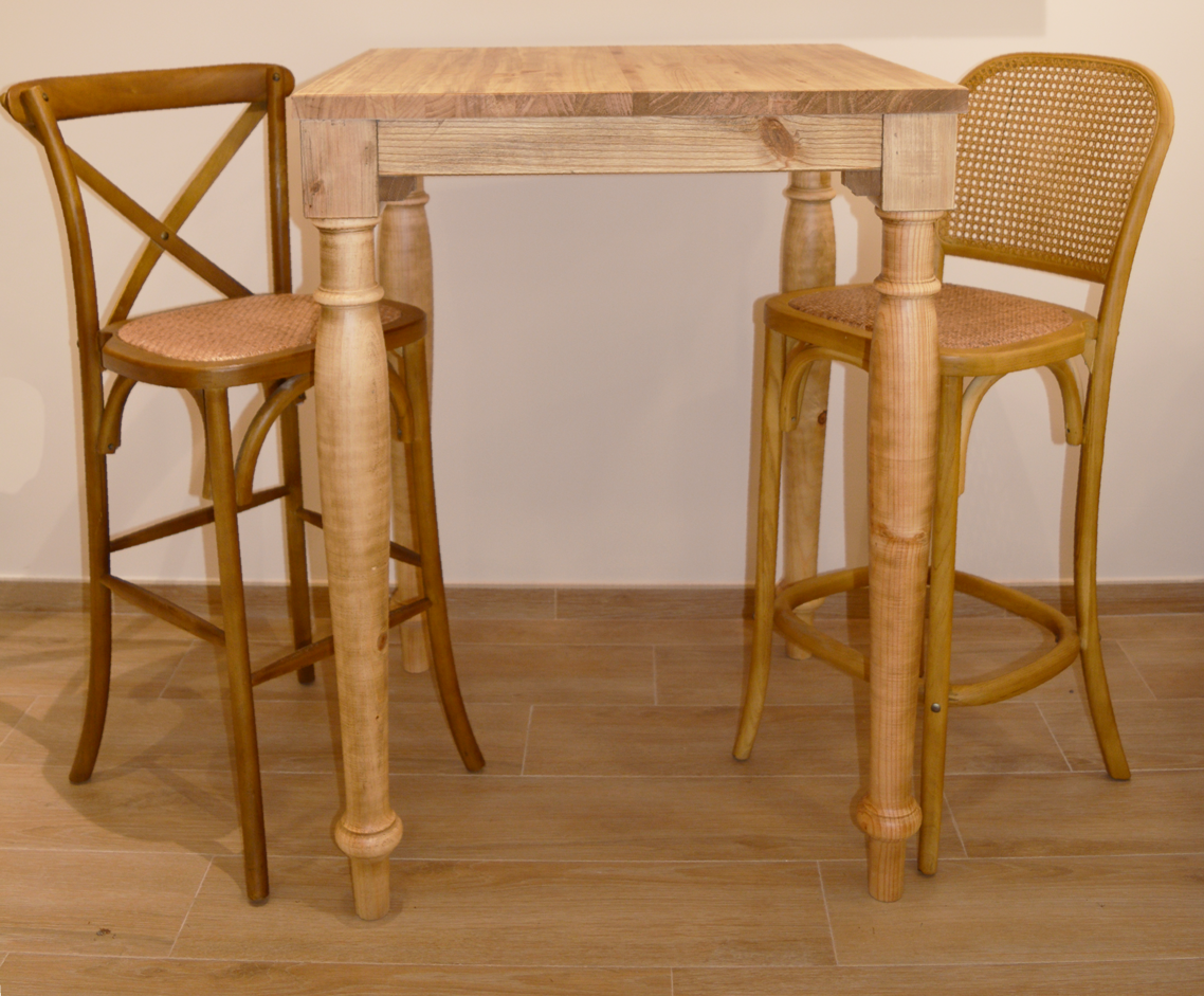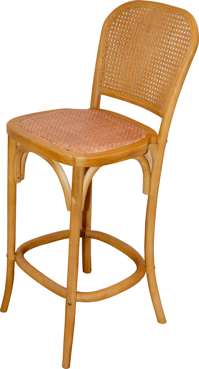 Taburete Cannage madera en color iroko, con asiento de ratán natural fabricado en madera de olmo y respaldo de . Su respaldo cannage es restaurantes y mesas altas.