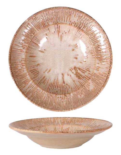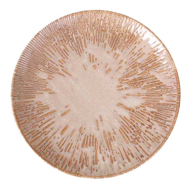 Cada pieza de la vajilla Barroco en color crema de Bonna tiene un diseño exclusivo ya que está elaborada con unos barnices que reaccionan antelas altas temperaturas en su cocción, dando lugar a esta maravillosa vajilla con diseños únicos.