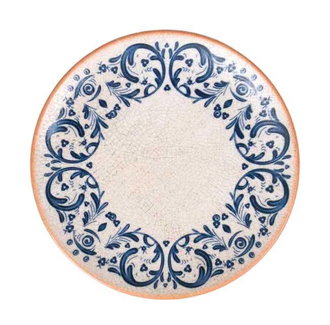 La vajilla Laudum es una vajilla preciosa, con un diseño que simula un cuarteado por la base toda de los platos que simulan el efecto de un mosaico y está acompañado por una cenefa en tonos azules con detalles florales. En el borde, una pequeña línea en tono arena que le aporta la terminación perfecta.
