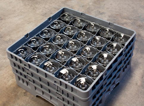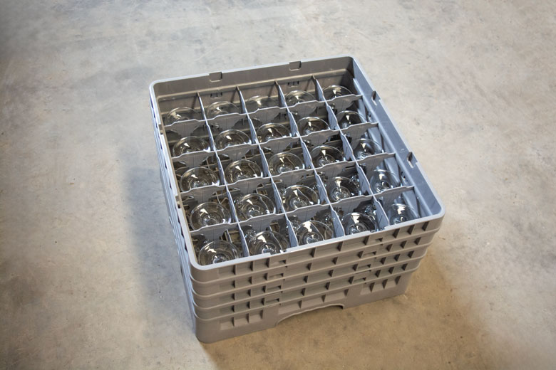 - Para el Vaso Aurora necesitarás unos extensores con 25 compartimentos y así, los vasos estarán perfectamente acomodados para transportarlos y el almacenamiento será mucho más fácil.