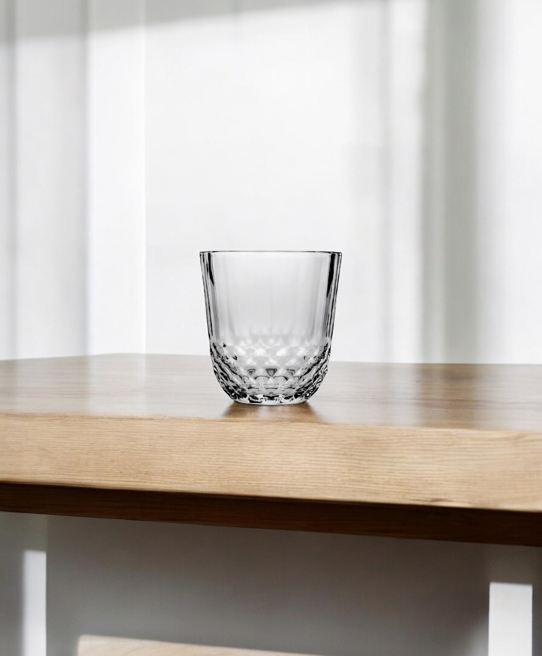 Eleva la presentación de tus vasos con nuestro exclusivo vaso de agua labrado de 32 cl. Este modelo combina a la perfección elegancia y practicidad, siendo ideal para complementar mesas de alto nivel en celebraciones como bodas, cenas de gala o eventos corporativos.