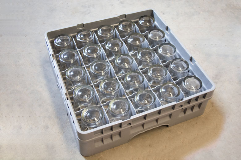 En concreto, para nuestros vasos de sidra, necesitarás unas cestas de 25 compartimentos.
