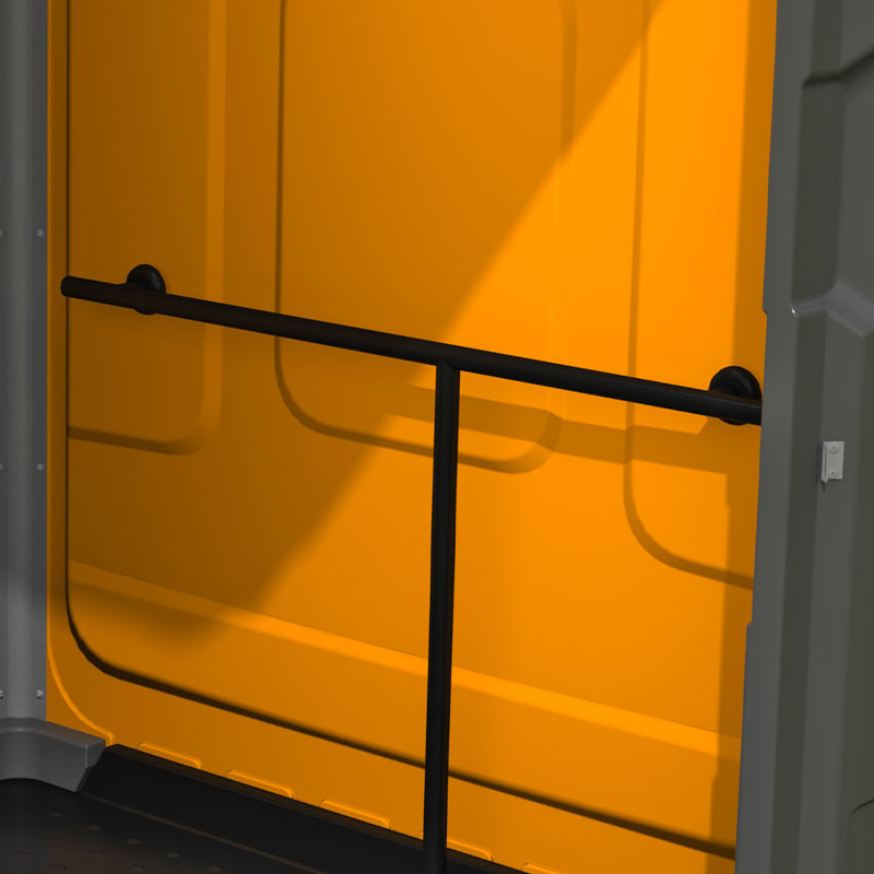Si estás buscando una solución para poder ofrecer un servicio en tu evento adaptado a todos, nuestro WC Portátil para Personas con Movilidad Reducida es perfecto. Con una medida adaptada y un fácil acceso a sillas de ruedas, nuestro WC Portátil tiene también unas barandillas metálicas por las paredes laterales.